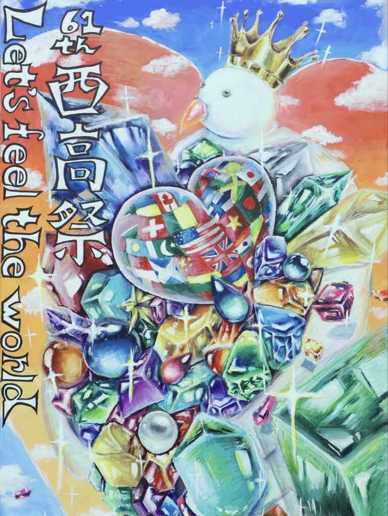 今年度のテーマ「let’s feel the World」は、全校生徒の意見を取り入れ生徒会役員で話し合い決定しました。 現代社会では、グローバル化が進む中で国の枠を超えての交流が進んでいます。海外に行く日本人も多く、同時に国内に来る海外の観光客も多くいます。しかし、このような多様化が進む社会のなかでも、私たち自身がその海外諸国について理解が進んでおらず、時には無理解からくるすれ違いもあると思います。その現状をふまえ、今年度の西高祭では各企画を国に関する企画にすることで、西高全体で世界各国についての理解を深められる機会にしたいと思います。 食や衣服、歴史など新しい発見につながる企画が盛りだくさんです!より多くの人に残るような西高祭にしていきます!